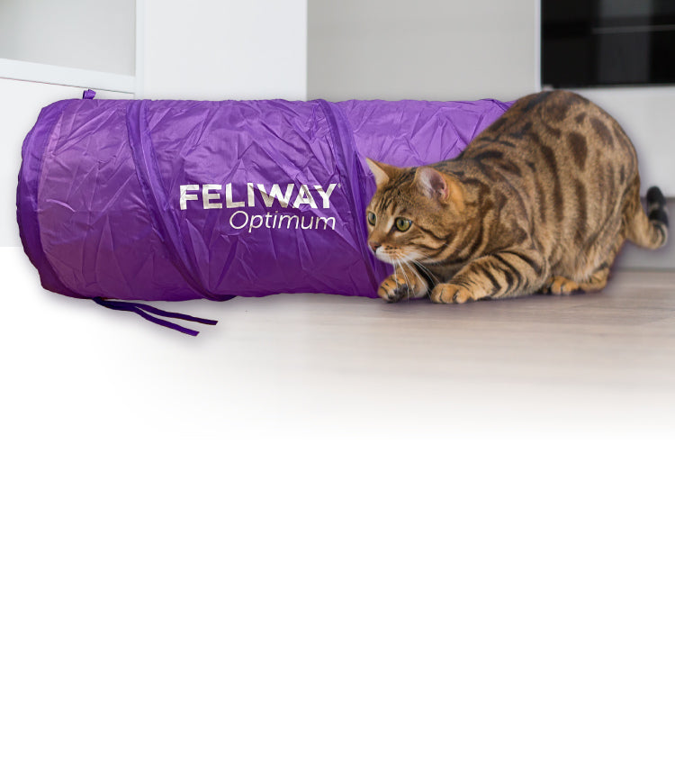 - FELIWAY Optimum – nuestra solución calmante más avanzada, que aporta serenidad reforzada y reduce más signos de estrés.